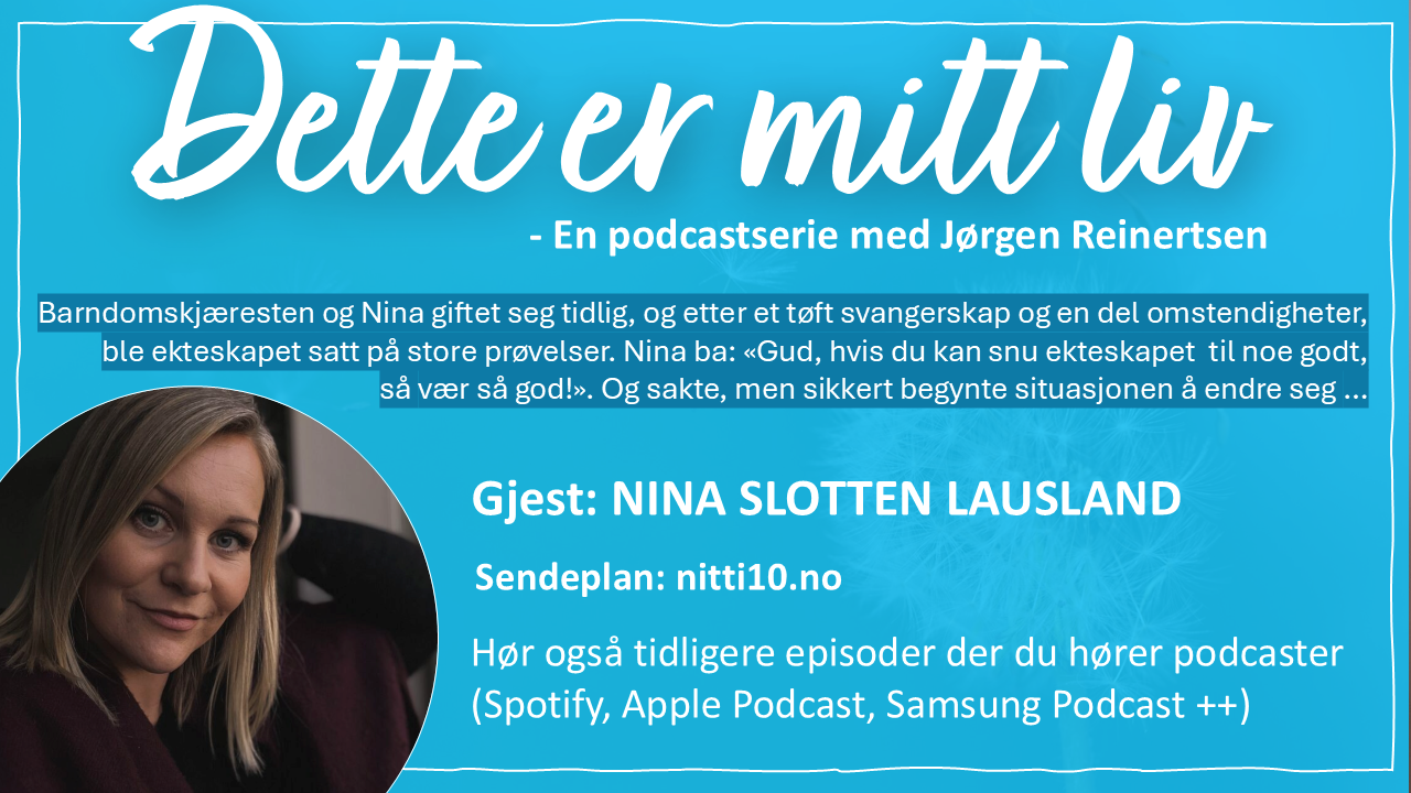 Nina forteller om en rik barndom som pastordatter, men da menigheten gjennomgikk en krise ble det tungt og smertefullt. I dette programmet er Lindesneskvinnen opptatt av å formidle at Gud har vært trofast gjennom alle livets stormer. Hun har også forfattet boken «Ekteskapsinstinktet»